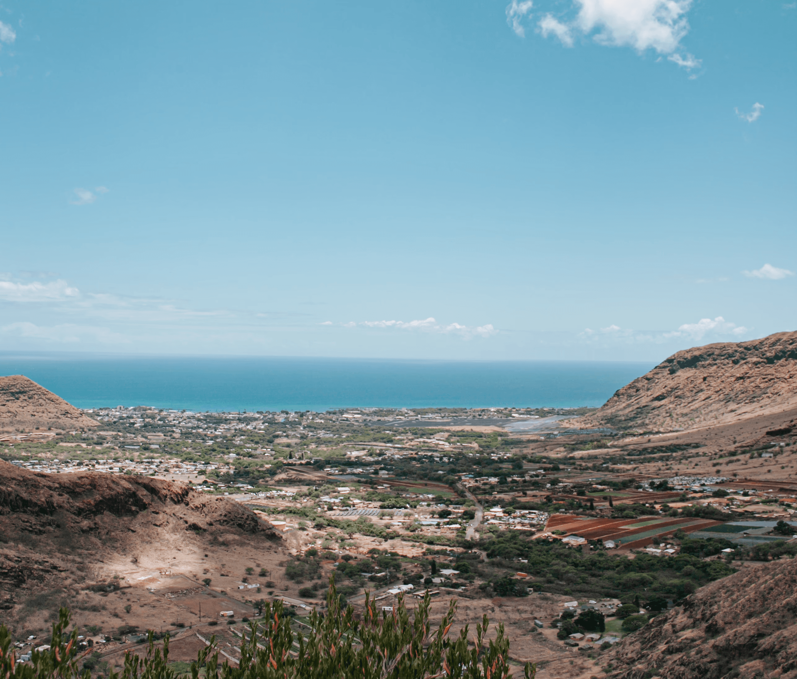 At the end of Waianae Valley Road, veer right at the bus triangle, and the entrance is the first driveway on the left with a gated wall.